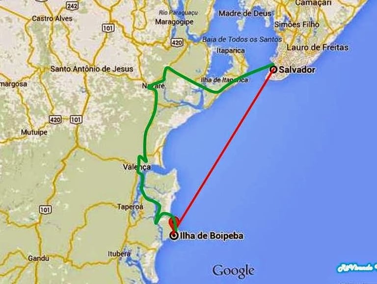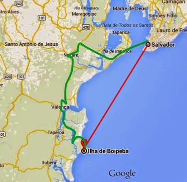 » Salvador x Valença: 145 km, 3h (via balsa de Itaparica).